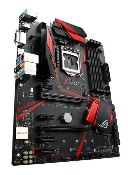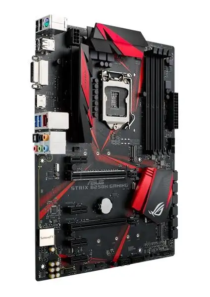 ASUS ROG Strix B250H Gaming. Protsessori tootja: Intel, Protsessori pesa: LGA 1151 (pesa H4), Ühilduvad protsessoriseeriad: Intel® Celeron®, Intel® Pentium®. Toetatud mälutüübid: DDR4-SDRAM, Mälupesa tüüp: DIMM, Toetatud mälu taktsagedused: 2133,2400 MHz. Rööptöötlustehnoloogia tugi: 2-Way CrossFireX, Maksimaalne graafikaadapteri mälu: 1024 MB, Maksimaalne resolutsioon: 4096 x 2160 pikslit. Ethernet-liidese tüüp: Gigabit Ethernet, LAN-kontroller: Intel® I219-V. Komponent: PC, Emaplaadi kujutegur: ATX, Emaplaadi kiibistik: Intel