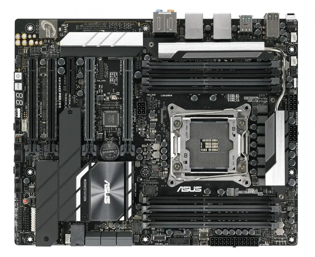 ASUS WS C422 PRO/SE. Protsessori tootja: Intel, Protsessori pesa: LGA 2066 (Socket R4). Toetatud mälutüübid: DDR4-SDRAM, Maksimaalne sisemälu: 512 GB, Mälupesa tüüp: DIMM. Kõvaketta ühenduse tüüp: SATA III. Rööptöötlustehnoloogia tugi: 3-Way CrossFireX,3-Way SLI. Ethernet-liidese tüüp: Gigabit Ethernet, LAN-kontroller: Intel® I210-AT