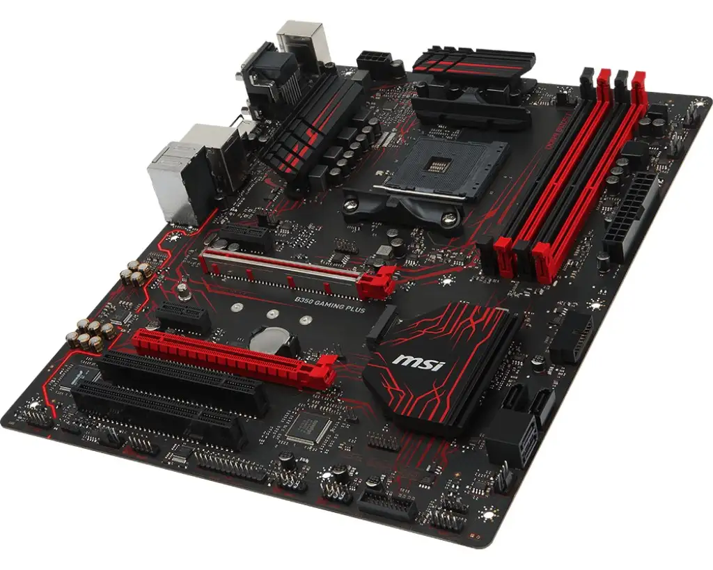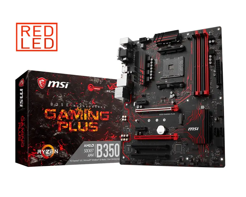 MSI B350 GAMING PLUS. Toetatud mälutüübid: DDR4-SDRAM, Mälupesa tüüp: DIMM, Toetatud mälu taktsagedused: 1866,2133,2400,2667,2933,3200 MHz. Protsessori tootja: AMD, Ühilduvad protsessoriseeriad: AMD A,AMD Ryzen, Protsessori pesa: Pesa AM4. RAID-tasemed: 0, 1, 10. Ethernet-liidese tüüp: Gigabit Ethernet, LAN-kontroller: Realtek 8111H. Komponent: PC, Emaplaadi kiibistik: AMD, Emaplaadi kiip: AMD B350