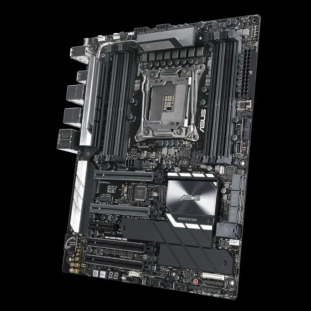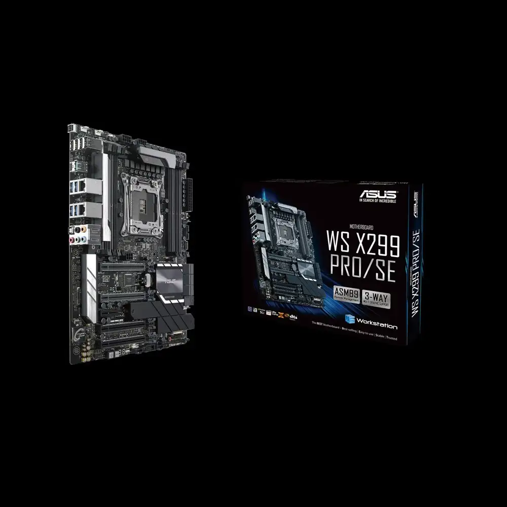 ASUS WS X299 PRO/SE. Protsessori tootja: Intel, Protsessori pesa: LGA 2066 (Socket R4), Ühilduvad protsessoriseeriad: Intel® Core™ X-series. Toetatud mälutüübid: DDR4-SDRAM, Maksimaalne sisemälu: 128 GB, Mälupesa tüüp: DIMM. RAID-tasemed: 0, 1, 5, 10. Rööptöötlustehnoloogia tugi: 3-Way CrossFireX, 3-Way SLI. Ethernet-liidese tüüp: Gigabit Ethernet, LAN-kontroller: Intel® I211-AT