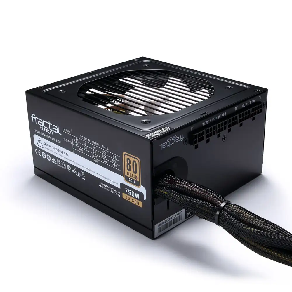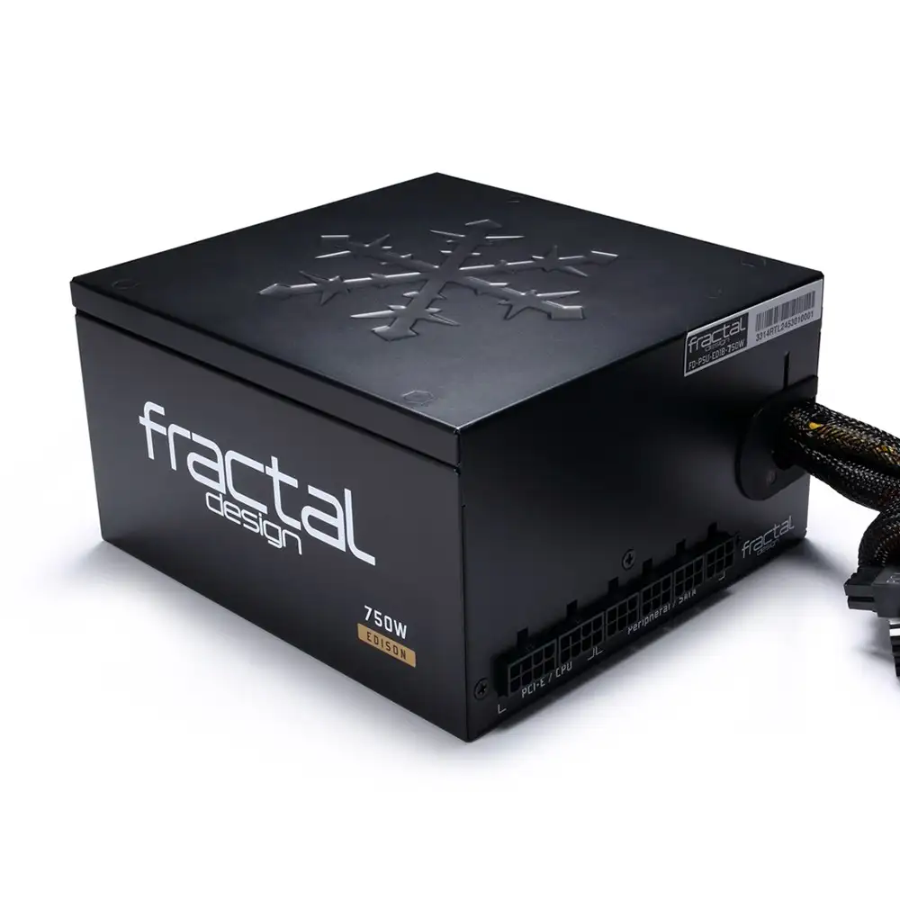 Fractal Design Edison M. Koguvõimsus: 750 W, Kombineeritud võimsus (+3,3 V): 100 W, Kombineeritud võimsus (+5 V): 100 W. Emaplaadi toitepistmik: 20+4 pin ATX, Kaabelduse tüüp: Osaliselt modulaarne. Otstarve: PC, Toiteploki (PSU) standard: ATX, 80 PLUS sertifikaat: 80 PLUS Gold. Toote värv: Must, Jahutuse tüüp: Aktiivne, Ventilaatori läbimõõt: 12 cm. Laius: 150 mm, Sügavus: 160 mm, Kõrgus: 86 mm