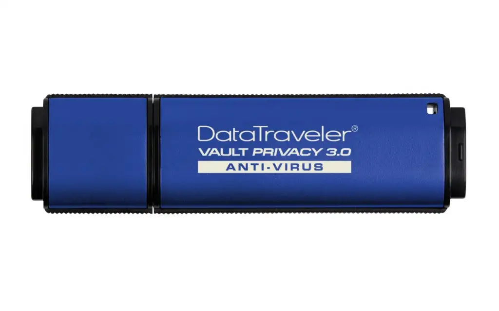 Kingston Technology DataTraveler Vault Privacy 3.0 Anti-Virus 4GB. Maht: 4 GB, Seadme liides: USB tüüp A, USB versioon: 3.0 (3.1 Gen 1), Lugemise kiirus: 80 MB/s, Kirjutamise kiirus: 12 MB/s. Kujutegur: Kork. Salasõna kaitse. Toote värv: Sinine