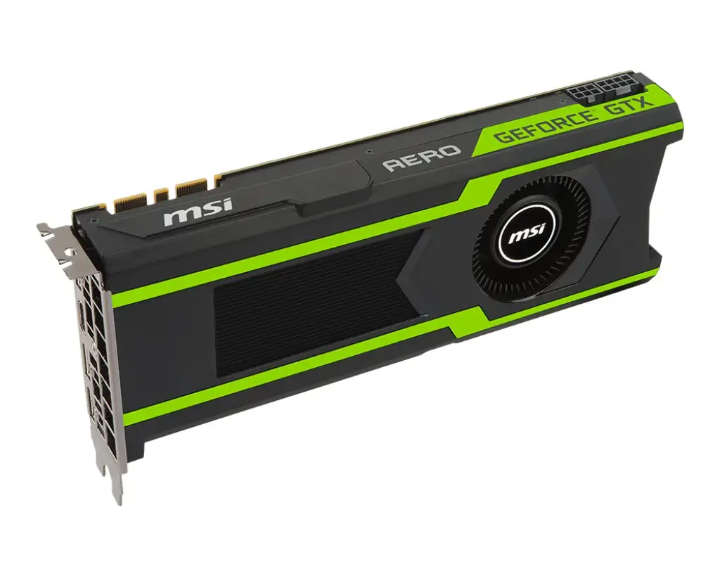 MSI GTX 1080 TI AERO 11G OC. Graafikaprotsessorite pere: NVIDIA, Graafikaprotsessor: GeForce GTX 1080 Ti, Protsessori sagedus: 1506 MHz. Eraldiseisva graafikakaardi mälu: 11 GB, Graafikaadapteri mälutüüp: GDDR5X, Mälusiin: 352 bitti, Mälu taktsagedus: 11016 MHz. DirectX-i versioon: 12.0, OpenGL-i versioon: 4.5. Liidese tüüp: PCI Express x16 3.0. Jahutuse tüüp: Aktiivne