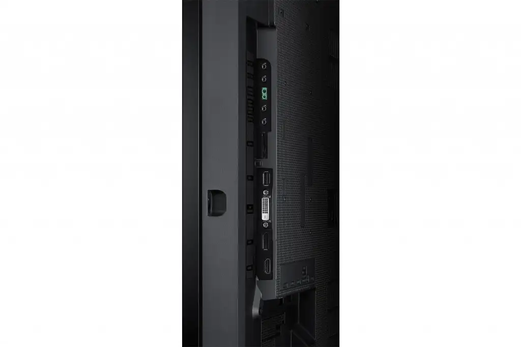 Samsung DM48D. Ekraani diagonaal: 121,9 cm (48"), Kuvamise tüüp: LED, Ekraani resolutsioon: 1920 x 1080 pikslit. Disain: Digital signage flat panel, Toote värv: Must, VESA-paigaldusliidesed: 400 x 400 mm. Võimsustarve (tüüpiline): 100 W, Võimsustarve (ooterežiim): 0,5 W, Energiatõhususe klass: B. Laius: 1075,1 mm, Sügavus: 49,9 mm, Kõrgus: 619,4 mm. Kaablid kaasa arvatud: Vahelduvvool, VGA, Pakendi laius: 1185 mm, Pakendi sügavus: 148 mm