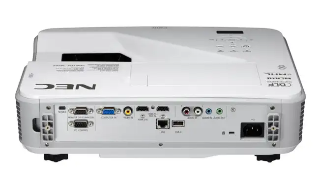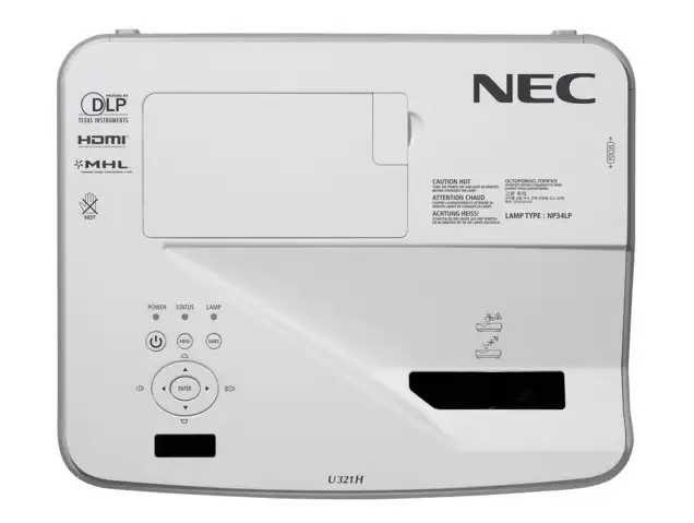 NEC U321H. Projektori heledus: 3200 ANSI luumenit, Projektsioonitehnoloogia: DLP, Projektori loomulik resolutsioon: 1080p (1920x1080). Lambi tööiga: 3000 h, Pirni võimsus: 260 W, Lambi tööiga (säästurežiim): 4000 h. Fookus: Manuaal, Fikseeritud fookuskaugus: 3,72 mm, Apertuuriulatus (F-F): 2,4 - 2,4. Analoogsignaali vormingu süsteem: NTSC,NTSC 3.58,NTSC 4.43,PAL,PAL 60,PAL M,PAL N,SECAM, Toetatud graafikaresolutsioonid: 640 x 480 (VGA), 720 x 480, 720 x 576, 800 x 600 (SVGA), 832 x 624, 1024 x 768 (XGA), 1152 x 864..., Toetatud videorežiimid: 480i,480p,576i,576p,720p,1080i. HDMI-pistiku tüüp: Täissuurus, USB-pistmiku tüüp: USB Type-A,USB Type-B, Jadaliidese tüüp: RS-232