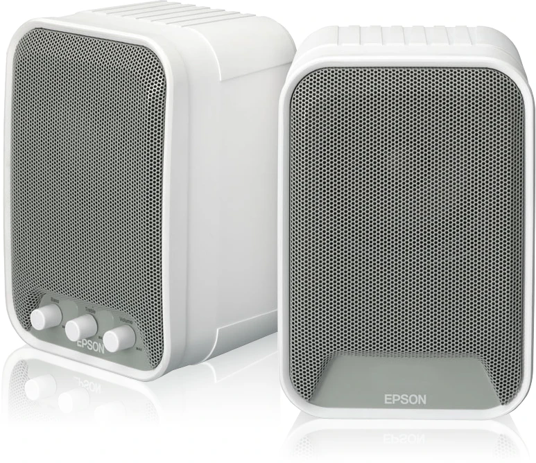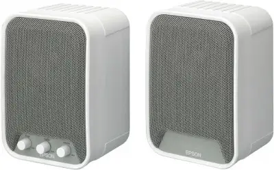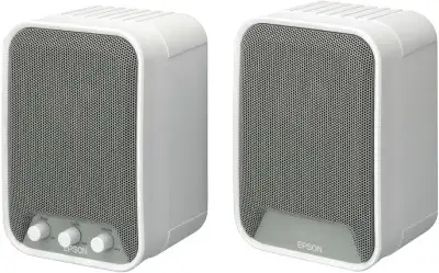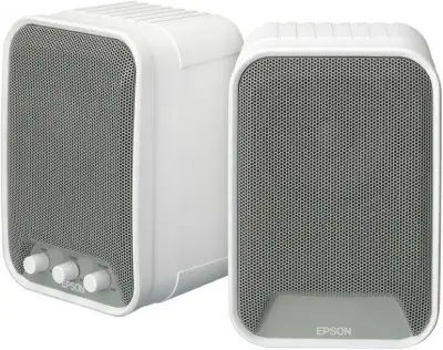 Epson Active Speakers - ELPSP02. Soovituslik kasutus: Muu. Audioväljundi kanalid: 2.0 kanalid, Draiverite arv: 2. Ühenduvustehnoloogia: Juhtmega ühendatud. RMS-nimivõimsus: 30 W, Sagedusvahemik: 80 - 20000 Hz, Näivtakistus: 8 Ω. Toote värv: Valge
