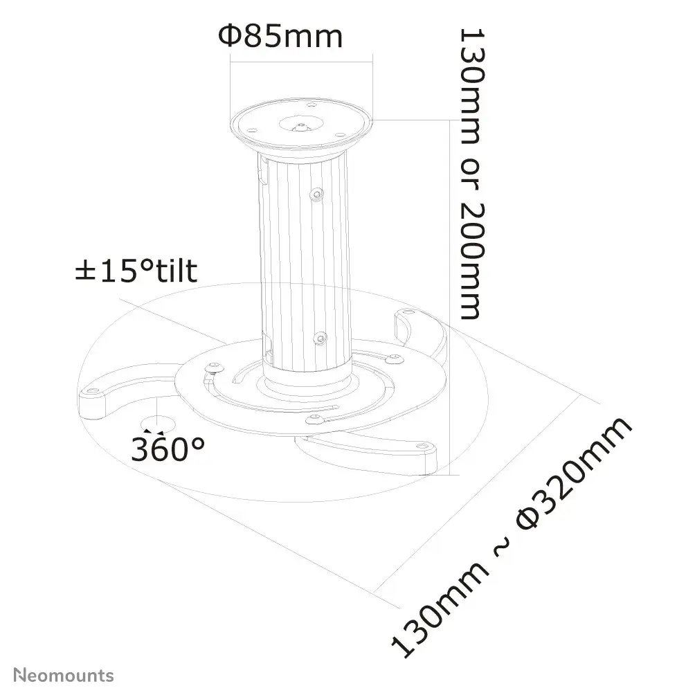 Neomounts BEAMER-C80. Kinnituse tüüp: Lagi, Maksimaalne kaal (mahutavus): 15 kg, Toote värv: Hõbe. Kõrgus: 200 mm, Pakendi laius: 200 mm, Pakendi sügavus: 70 mm. Päritoluriik: Hiina. Tooteid põhikasti (välimine) kohta: 10 tk, Peamise pakendi netokaal: 11,8 kg, Tooteid kaubaaluse kohta (euroalus): 240 tk. Pakendi netokaal: 1,2 kg