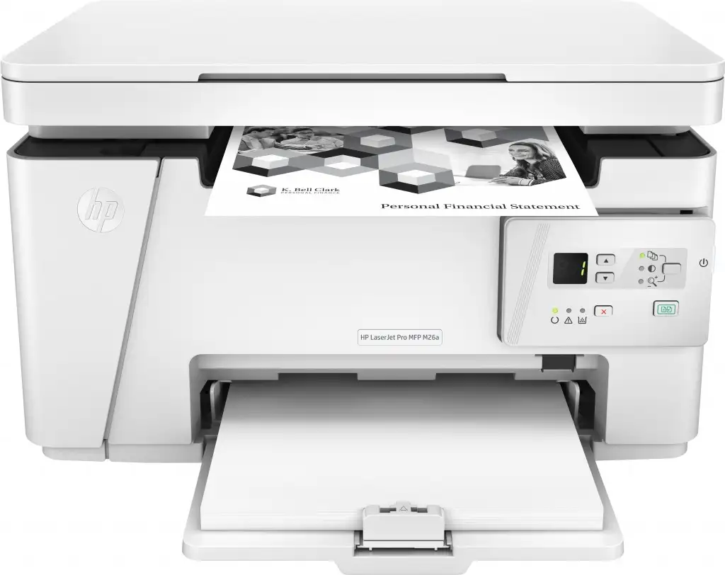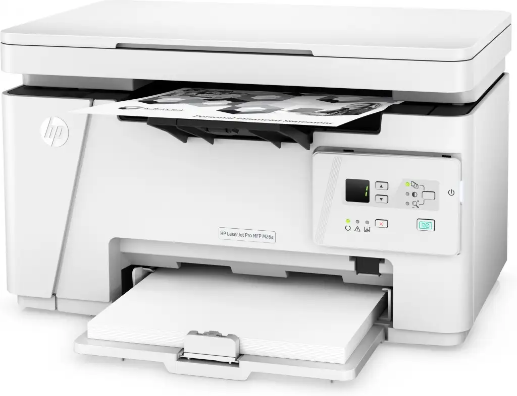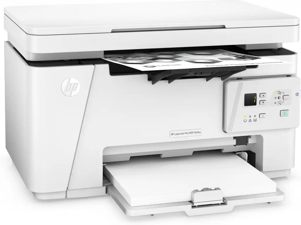 HP LaserJet Pro M26a. Printimistehnoloogia: Laser, Printimine: Mono printimine. Maksimaalne resolutsioon: 600 x 600 DPI. Kopeerimine: Mono kopeerimine. Maksimaalne kopeerimisresolutsioon: 600 x 400 DPI. Skaneerimine: Värviskaneerimine. Optilise skaneerimise resolutsioon: 1200 x 1200 DPI. Maksimaalne ISO A-seeria paberi suurus: A4. Standardne sisestusvõimsus: 150 lehte, Standardne väljundvõimsus: 100 lehte. Toote värv: Valge