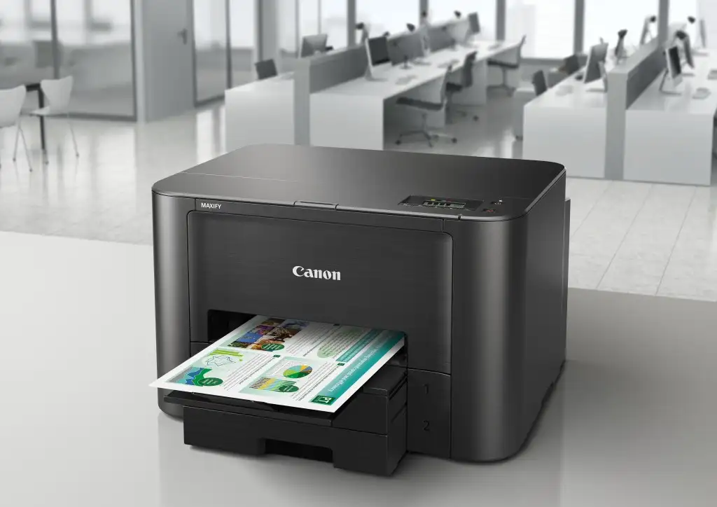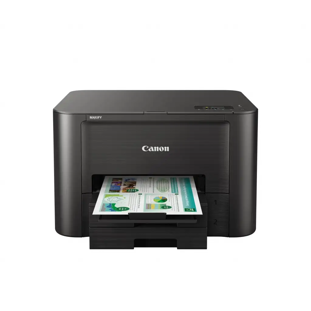 Canon iB4150, MAXIFY. Maksimaalne käidutsükkel: 30000 lehekülge kuu kohta, Maksimaalne resolutsioon: 600 x 1200 DPI, Printimisvärvid: Must, Tsüaan, Magenta, Kollane. Printimiskiirus (must-valge, tavakvaliteet, A4/US Letter-formaat): 24 lk/min, Aeg esimese leheküljeni (must, tavaline): 6 s, Printimiskiirus (värviline, mustandikvaliteet, A4/US Letter-formaat): 15,5 lk/min. Standardne sisestusvõimsus: 500 lehte. Maksimaalne ISO A-seeria paberi suurus: A4, Standardsalve meedia tüübid: Ümbrikud, Läikepaber, Kõrge resolutsiooniga paber, Fotopaber, Tavaline paber, ISO A-seeria suurused (A0...A9): A4,A5. WiFi-standardid: 802.11b,802.11g,Wi-Fi 4 (802.11n), Standardliidesed: Ethernet, USB 2.0, Juhtmevaba LAN, Mobiilse printimise tehnoloogia: Apple AirPrint,Canon PRINT Business,Google Cloud Print,Mopria Print Service