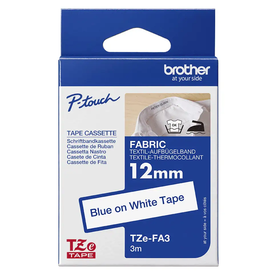 Brother TZE-FA3. Sildi värv: Sinine valgel taustal, Kasseti tüüp: TZe, Päritoluriik: Hiina. Lindi laius: 1,2 cm, Lindi pikkus: 3 m, Laius: 18 mm. Kaubaaluse brutokõrgus: 16,2 cm, Põhikastid (välimised) kaubaaluse kohta: 36 tk, Kihid kaubaaluse kohta: 6 tk. Lindi suurus: 1,2 cm