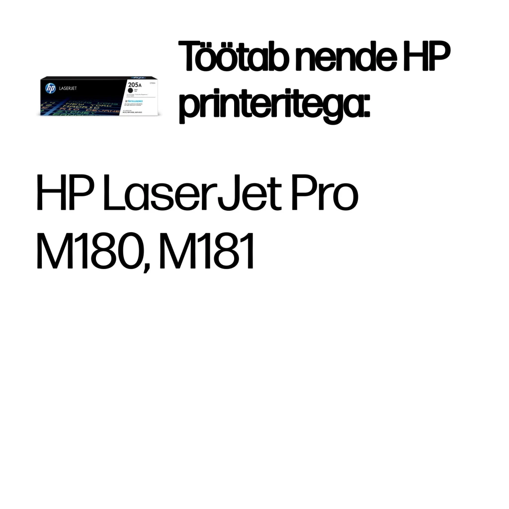 | Ühilduvus | HP 205 toner cartridges work with: HP LaserJet Pro M180, M181 |