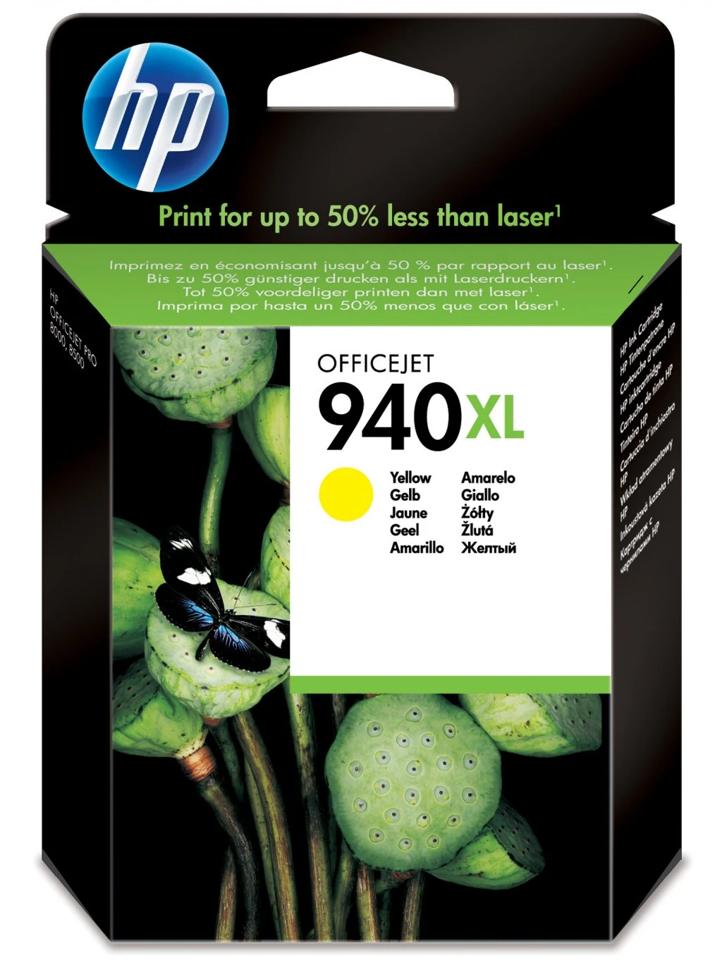 HP 940XL High Yield Yellow Original Ink Cartridge. Kasseti mahutavus: High (XL) Yield, Colour ink type: Pigmendipõhine tint, Värvilise trüki lehekülgede arv: 1400 lehekülge, Kogus pakis: 1 tk