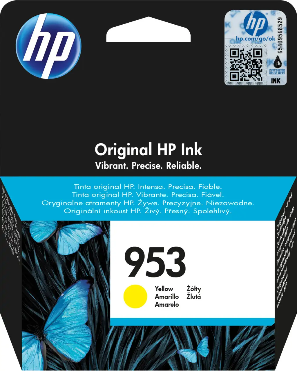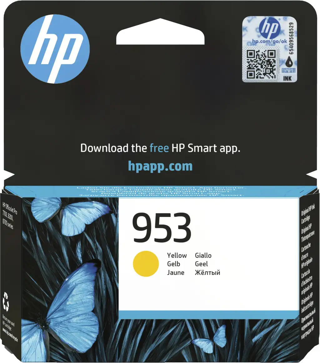 HP 953 Yellow Original Ink Cartridge. Värvilise tindi tüüp: Pigmendipõhine tint, Kasseti mahutavus: Standard Yield, Varustuse tüüp: Üksik pakend, Värvilise trüki lehekülgede arv: 630 lehekülge, Värvilise tindi hulk: 9 ml, Printimisvärvid: Kollane, Kogus pakis: 1 tk