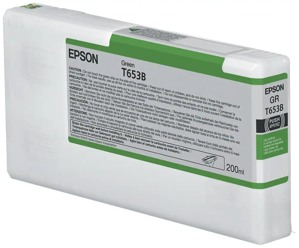 Epson T653B Green Ink Cartridge (200ml). Värvilise tindi tüüp: Pigmendipõhine tint, Värvilise tindi hulk: 200 ml, Printimisvärvid: Roheline, Kogus pakis: 1 tk