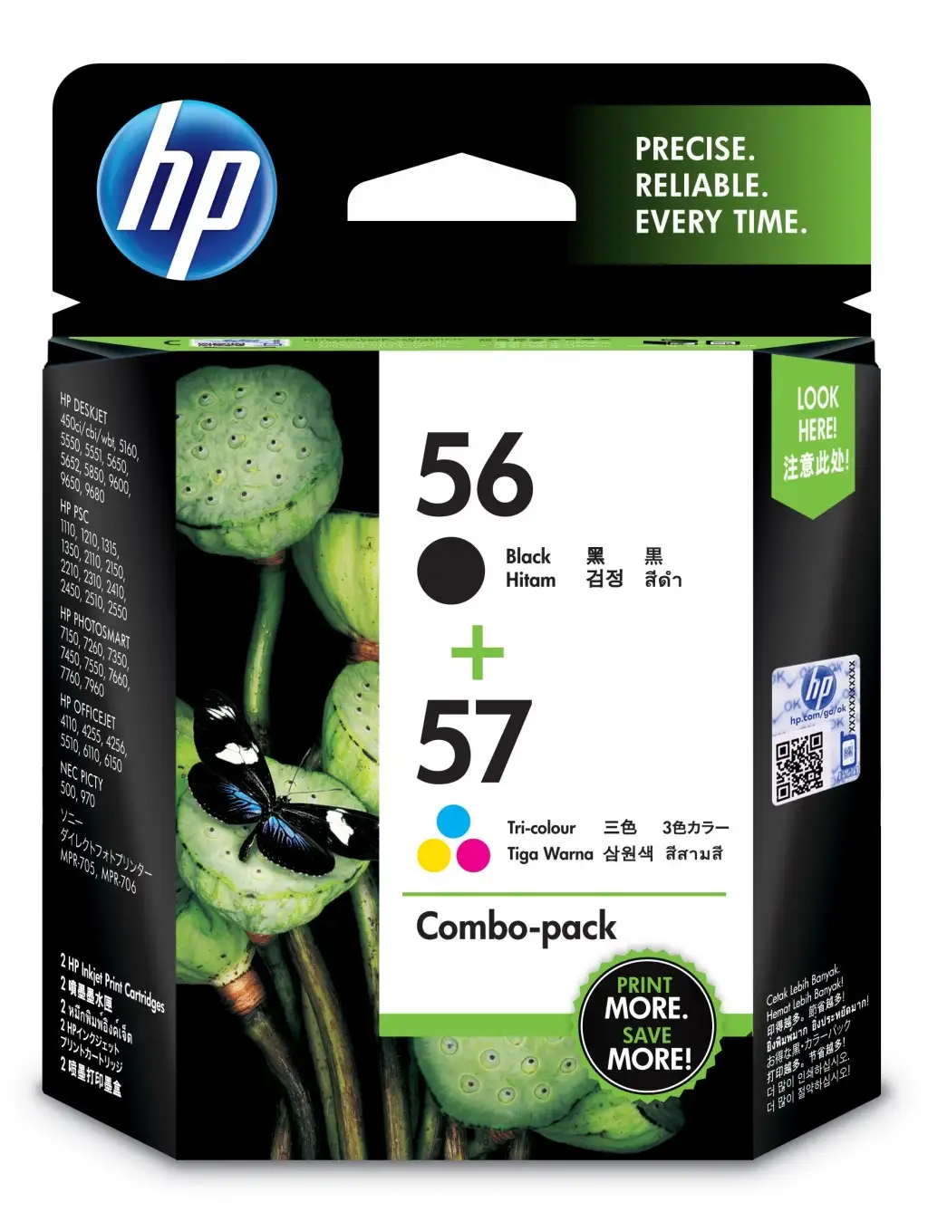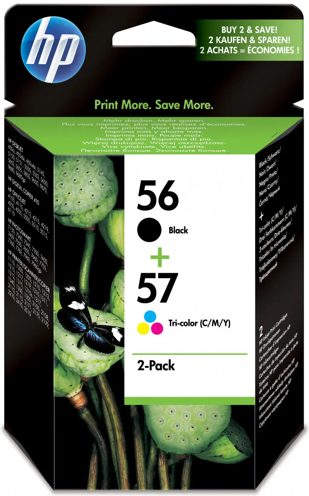 HP 56/57. Kasseti mahutavus: High (XL) Yield, Black ink type: Pigmendipõhine tint, Colour ink type: Värvipõhine tint, Varustuse tüüp: Mitmikpakend, Kogus pakis: 2 tk, Musta tindi lehekülgede piirarv: 520 lehekülge