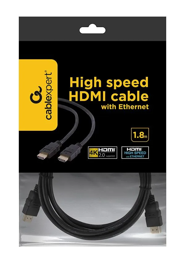 | Summary | Gembird 1.8m HDMI M/M. Cable length: 1.8 m, Connector 1: HDMI Type A (Standard), Connector 1 gender: Male, Connector 2: HDMI Type A (Standard), Connector 2 gender: Male, Connector contacts plating: Gold, Data transfer rate: 10 Gbit/s, Product colour: Black |