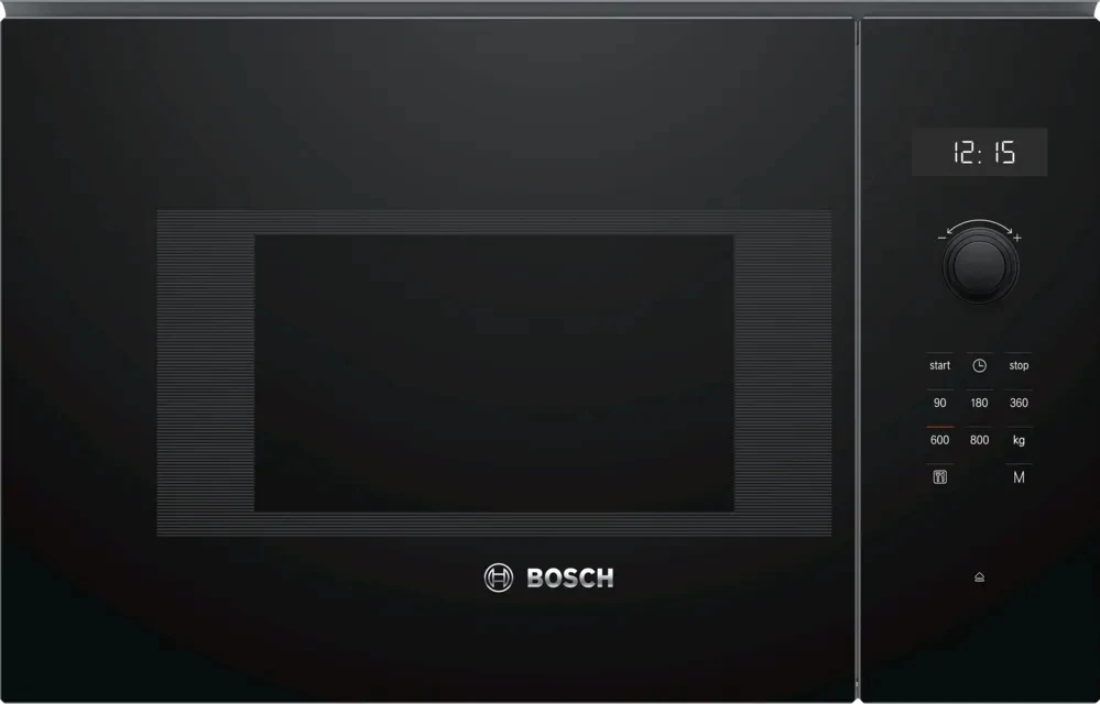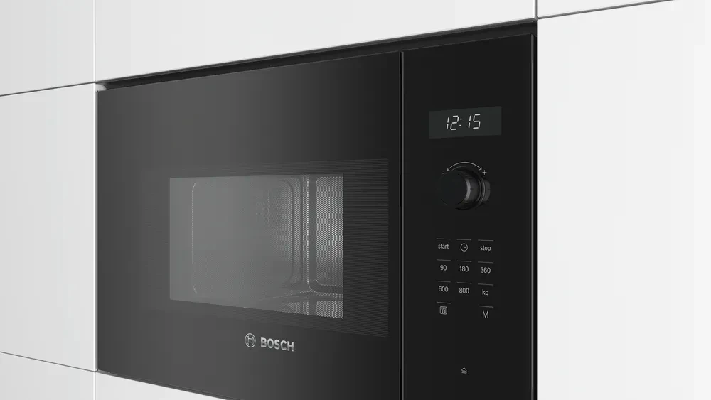 Bosch Serie 6 BFL524MB0. Seadme paigaldus: Sisseehitatud, Toote tüüp: Eraldiseisev mikrolaineahi, Sisemahutavus: 20 l, Mikrolainevõimsus: 800 W, Sisseehitatud ekraan, Kuvamise tüüp: LED, Kontrolli tüüp: Pöörlev, Puudutus, Toote värv: Must