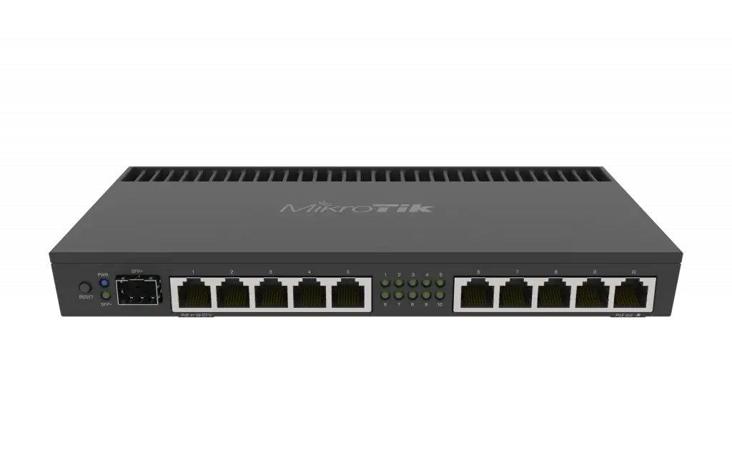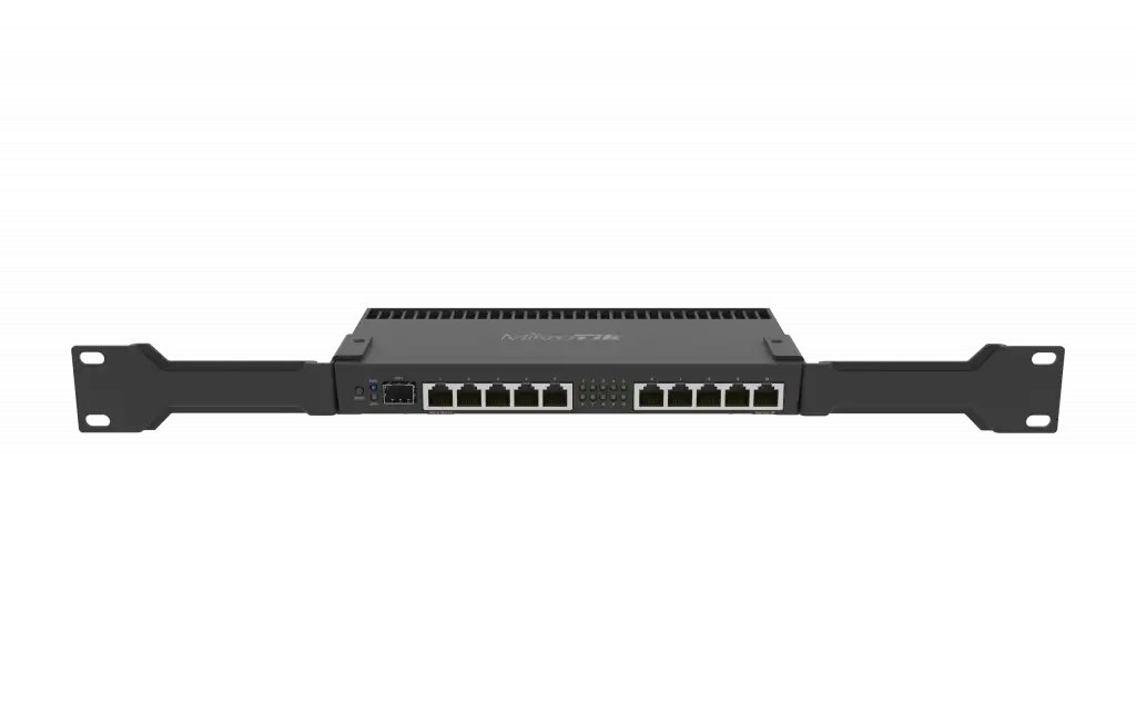 RB4011 series - amazingly powerful routers with ten Gigabit ports, SFP+ 10Gbps interface and IPsec hardware acceleration for a great price! The RB4011 uses a quad core Cortex A15 CPU, same as in our carrier grade RB1100AHx4 unit. The unit is equipped with 1GB of RAM, can provide PoE output on port #10 and comes with a compact and professional looking solid metal enclosure in matte black. RB4011iGS+RM (Ethernet model) includes two rackmount ears that will securely fasten the unit in a standard 1U rack space. Note: Passive DAC (MikroTik S+DA0001/S+DA0003) are not supported.
