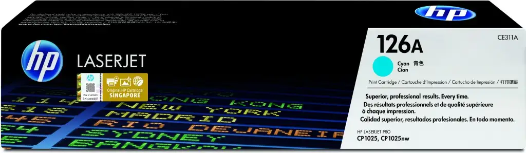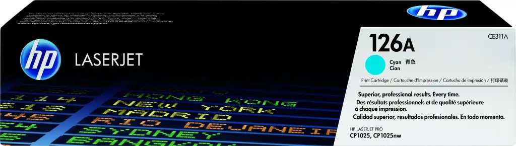 HP 126A Cyan Original LaserJet Toner Cartridge. Värvilise toonerkasseti prinditavate lehekülgede arv: 1000 lehekülge, Printimisvärvid: Tsüaan, Kogus pakis: 1 tk