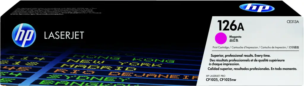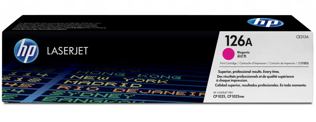 HP 126A Magenta Original LaserJet Toner Cartridge. Värvilise toonerkasseti prinditavate lehekülgede arv: 1000 lehekülge, Printimisvärvid: Magenta, Kogus pakis: 1 tk