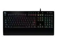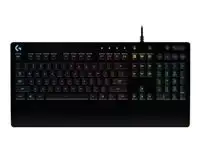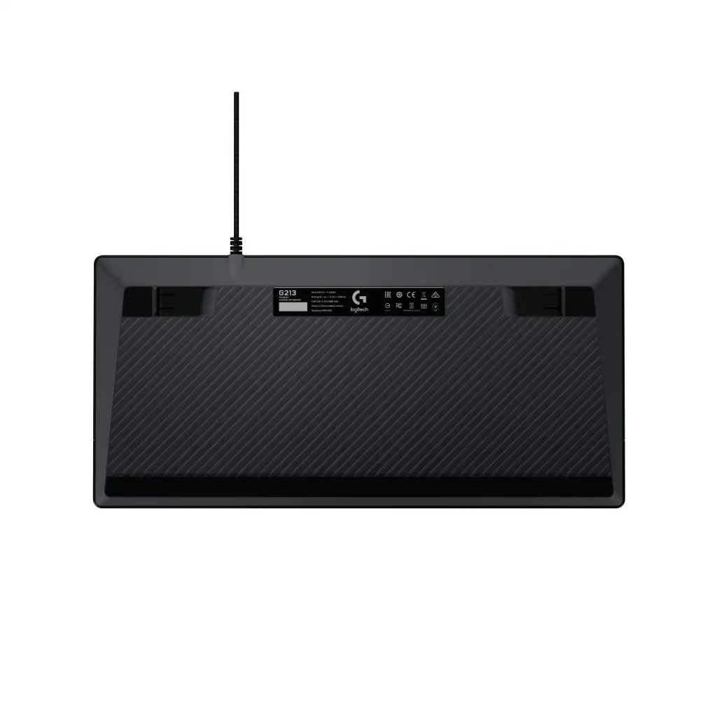 Logitech G213. Klaviatuuri kujutegur: Standard. Klaviatuuri stiil: Sirge. Ühenduvustehnoloogia: Juhtmega ühendatud, Seadme liides: USB, Klaviatuuri paigutus: QWERTY. Tagantvalgustuse tüüp: RGB LED, Randmetugi. Kaabli pikkus: 1,8 m. Soovituslik kasutus: Mängimine. Toote värv: Must