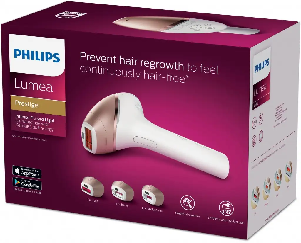 Philips Lumea Prestige BRI956/00 IPL fotoepilaator. Toote värv: Valge, Karvaeemaldustehnoloogia: Valgusimpulsstehnoloogia, Jalgade protseduuriks kuluv aeg: 8,5 min. Toiteallikas: Elektritoide/akutoide, AC-sisendpinge: 100-240 V