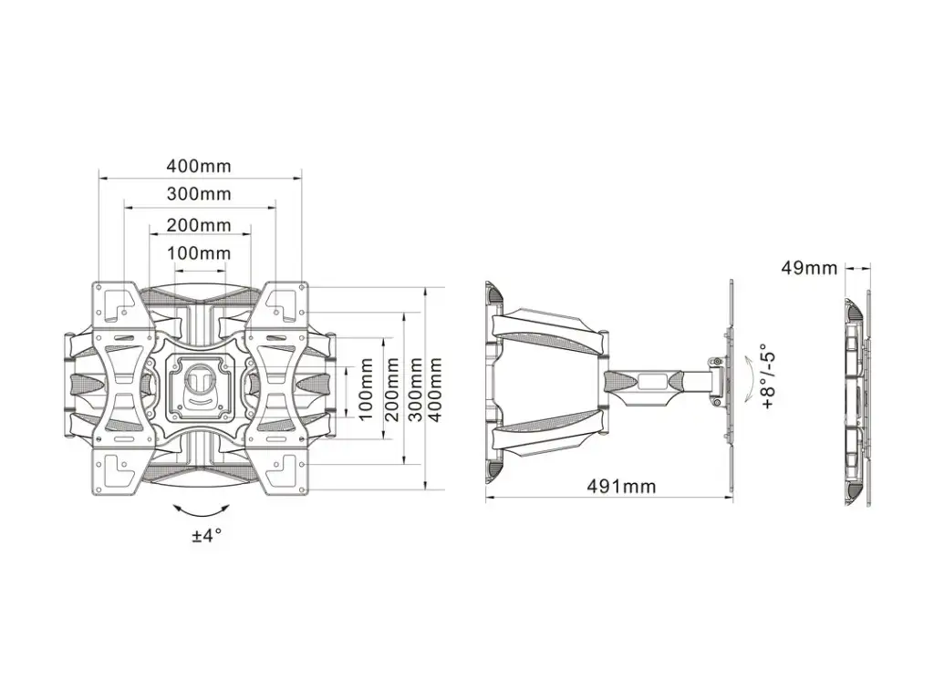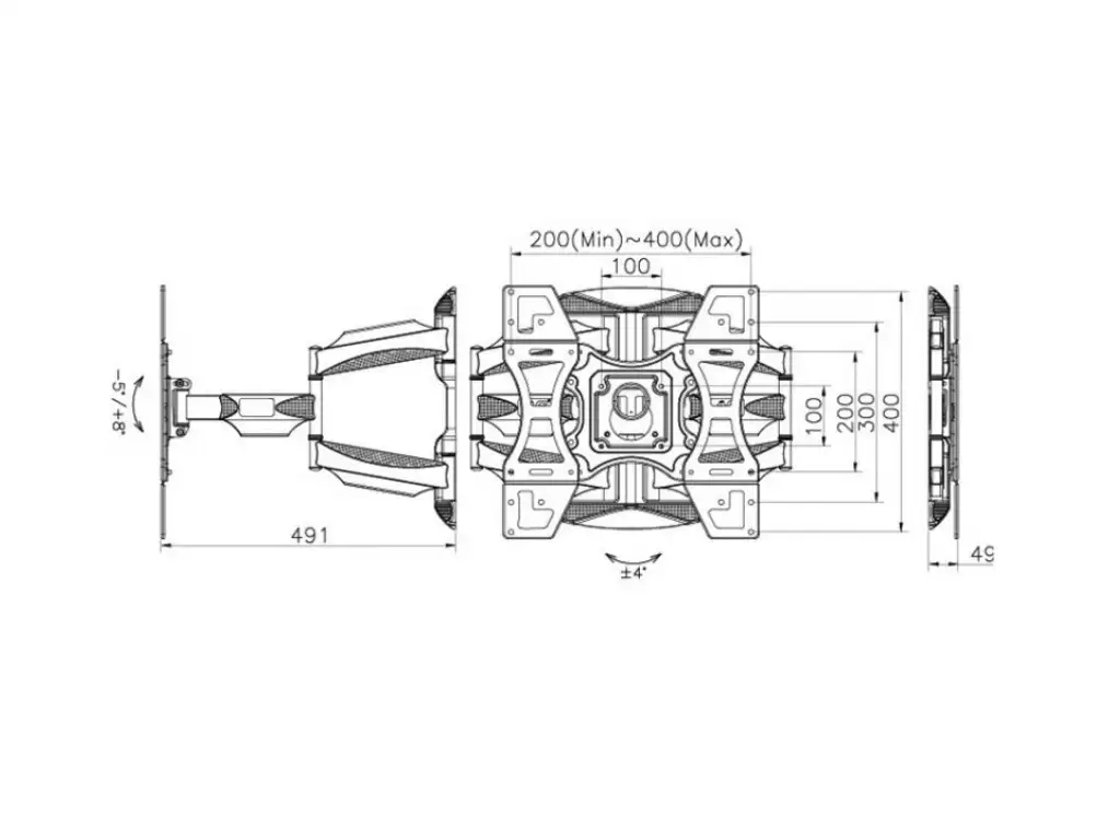 Flat Panel Mount Interface | 100 x 100 mm, 200 x 200 mm, 400 x 200 mm, 400 x 400 mm, 300 x 200 mm, 200 x 100 mm, 300 x 300 mm |