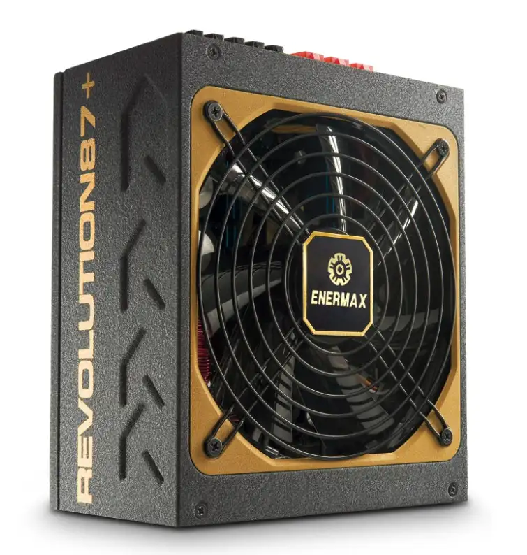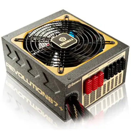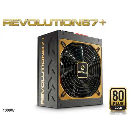 Enermax Revolution87+ 1000W. Koguvõimsus: 1000 W, AC-sisendpinge: 100 - 240, Tipuvõimsus: 1100 W. Ventilaatori läbimõõt: 12 cm, Ventilaatorite arv: 1 ventilaator(id), Ventilaatori paiknemine: Ülaosa. Emaplaadi toitepistmik: 24-pin ATX, Kaabelduse tüüp: Osaliselt modulaarne. Otstarve: PC, Toiteploki (PSU) standard: ATX, Müratase (väga vaikne režiim, 30%): 13,5 dB. Toote värv: Must