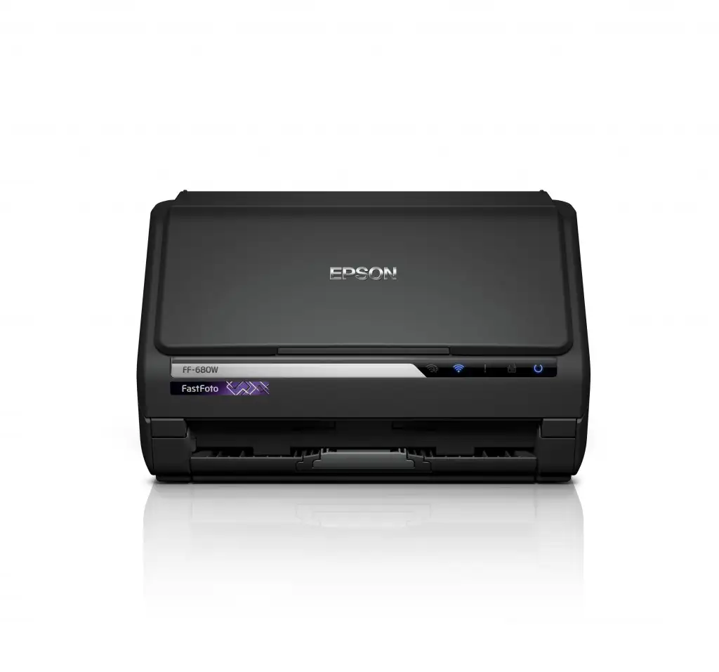 Epson FastFoto FF-680W. Maksimaalne skaneerimissuurus: 216 x 910 mm, Optilise skaneerimise resolutsioon: 600 x 600 DPI, Sisendi värvisügavus: 30 bitti. Skaneerimistüüp: Poogna-skänner, Toote värv: Must. Anduri tüüp: CIS, Valgusallikas: RGB LED, Pildikvaliteedi parandamine: Grain reduction, Colour restoration. Standardne sisestusvõimsus: 100 lehte. Maksimaalne ISO A-seeria paberi suurus: A4, Toetatud skaneerimismeediumi tüübid: Fotopaber, Meedia paksus (min): 0,3 mm