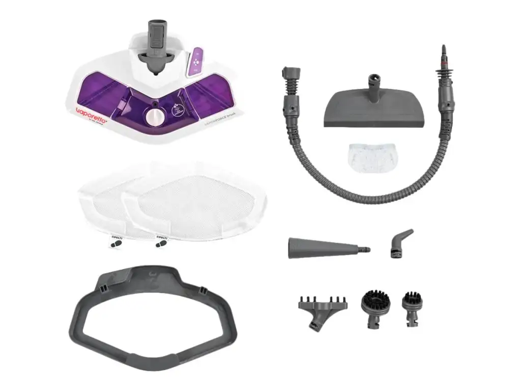 Special features | Thanks to the dual steam mop and handheld cleaner mode, Vaporetto SV440_Double lets you clean up to 15 different surfaces: parquet, tiles, marble, fitted carpets and rugs, hobs, extractor hoods, taps, bathroom fixtures, grouting, windows and mirrors, upholstery (sofas, armchairs, cushions and mattresses), doors and wardrobe doors, radiators, curtains and clothes, plants. |