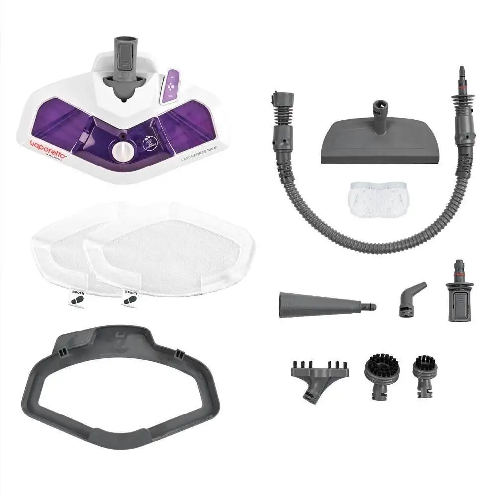 Polti Vaporetto SV440_Double. Tüüp: Aurumopp, Maht: 0,3 l, Toote värv: Violetne, Valge. Võimsus: 1500 W, Toiteallikas: Vahelduvvool. Puhastatavad pinnad: Paljas põrand, Vaip, Kõva põrand, Trepiastmed, Soojenemisaeg: 15 s, Tööraadius: 7,5 m. Kaal: 2,4 kg, Laius: 320 mm, Sügavus: 200 mm. Kaasas olevate tarvikute arv: 11 tk