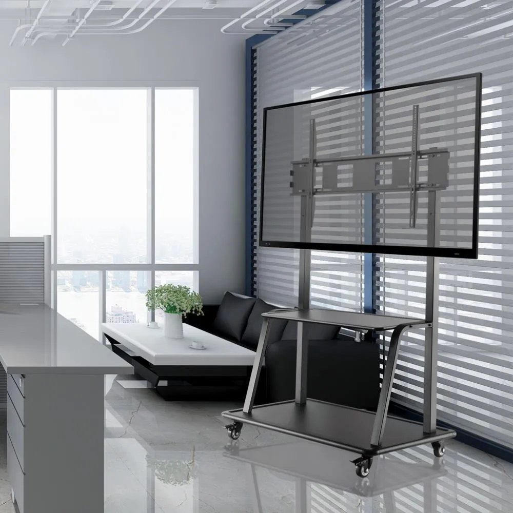 The Neomounts by Newstar floor stand, model NS-M4000BLACK is a mobile floor stand for flat screens up to 105" (267 cm). This mobile stand is a great choice for space saving placement or when wall-, ceiling mounting or desk placement is not an option. This cart stretches your investment by serving a variety of projection needs by sharing a large display over multiple rooms. Get optimal positioning for both standing and seated audiences, in any application, in any part of your location. The mount is manually height adjustable. Neomounts by Newstars' floor stand, NS-M4000BLACK holds your TV, AV equipment and even hides your cables. The casters allow the stand to move it to where you need it. Easily roll this cart through doorways and over thresholds. The floor stand also comes with four leveling feet. Neomounts by Newstar NS-M4000BLACK is suitable for screens up to 105" (267 cm). The weight capacity of this product is 150 kg each screen. The stand is suitable for screens that meet VESA hole pattern 200x200 to 1000x600mm. All installation material is included with the product.