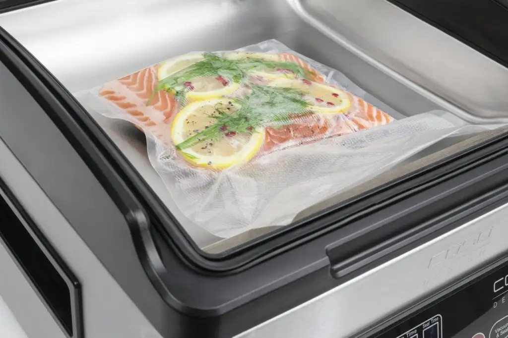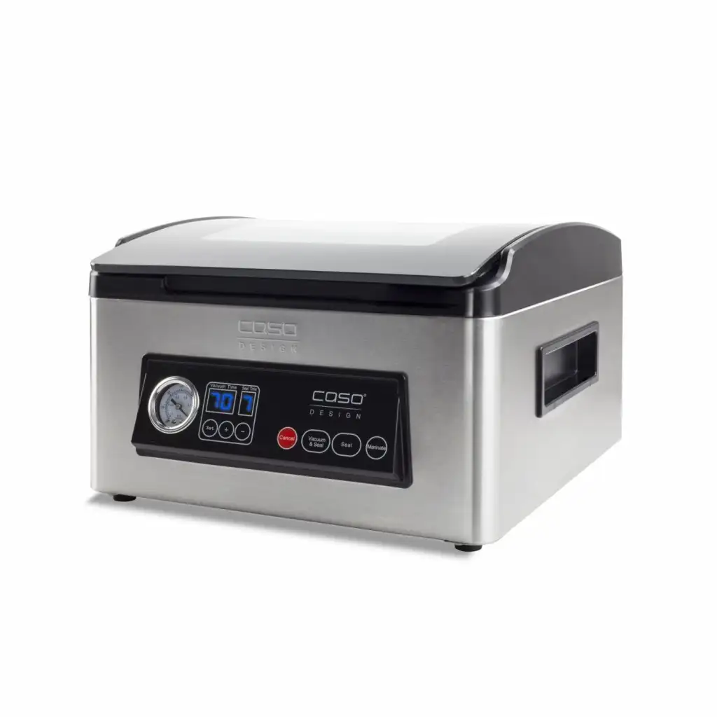 Strong professional vacuum pump - 70 liters / minute. Digital process display of the vacuum and seal function. Adjustable vacuum and sealing time. High-quality manometer for displaying the current pressure.