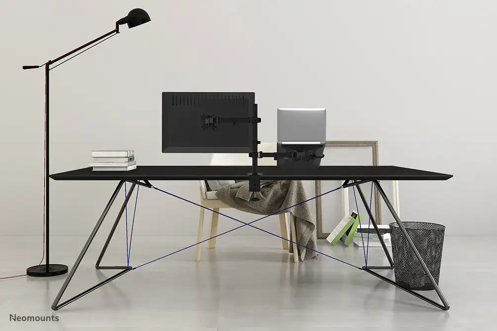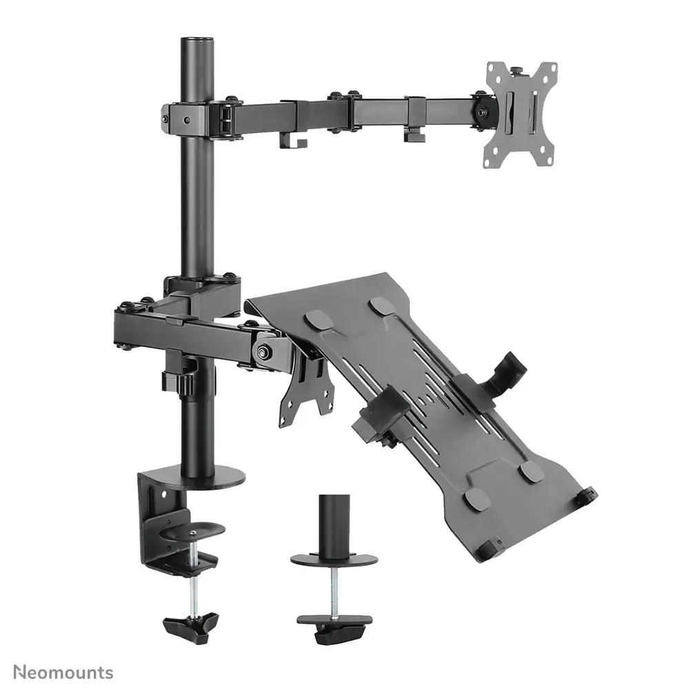 Neomounts FPMA-D550NOTEBOOK. Paigaldus: Klamber/kaitsekrae, Maksimaalne kaal (mahutavus): 8 kg, Ekraani minimaalne suurus: 25,4 cm (10"), Ekraani maksimaalne suurus: 81,3 cm (32"), Paigaldussüsteemi ühilduvus (min): 75 x 75 mm, Paigaldussüsteemi ühilduvus (max): 100 x 100 mm. Kõrguse reguleerimine, Kaldenurk: 0 - 90°. Toote värv: Must