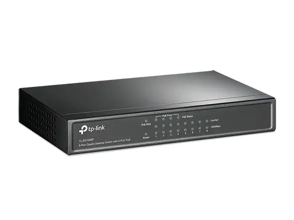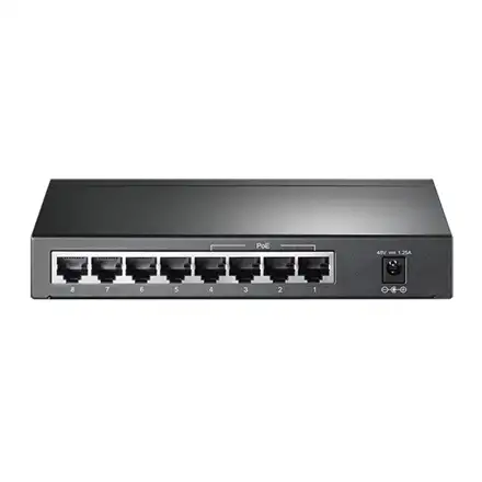 TP-Link TL-SG1008P. Lüliti tüüp: Mittejuhitav. RJ-45 Etherneti ühenduse pesade tüüp: Gigabit Ethernet (10/100/1000), RJ-45 Etherneti ühenduse pesade arv: 8. Täisdupleks. MAC-aadresside tabel: 4800 sisestust, Lülitusvõime: 16 Gbit/s. Võrgustandardid: IEEE 802.11j. Alalisvoolu sisendpinge: 48 V. Toitepistmik: Alaldi sisendi pesa. Power over Ethernet tugi