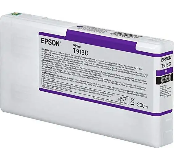 Epson T913D. Värvilise tindi tüüp: Pigmendipõhine tint, Kasseti mahutavus: Standard Yield, Värvilise tindi hulk: 200 ml, Printimisvärvid: Violetne, Kogus pakis: 1 tk