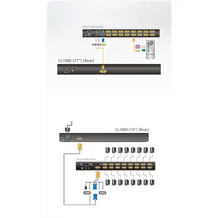 Exclusive LED illumination light - designed by ATEN to illuminate the keyboard and touchpad to allow visibility in low-light conditions. Integrated KVM console with 17" or 19” LED-backlit LCD monitor – in a sliding housing with top and bottom clearance for smooth operation in a 1U high system rack. Supports input video resolutions up to 1920 x 1200@60 Hz. LEDs 1 x KVM Console (Dark Green) 1 x LCD (Orange), 1 x NumLock (Green) 1 x CapsLock (Green) 1 x ScrollLock (Green)