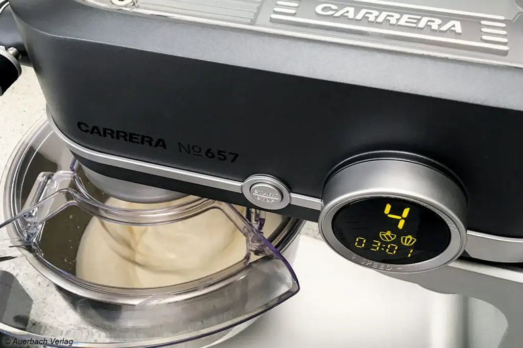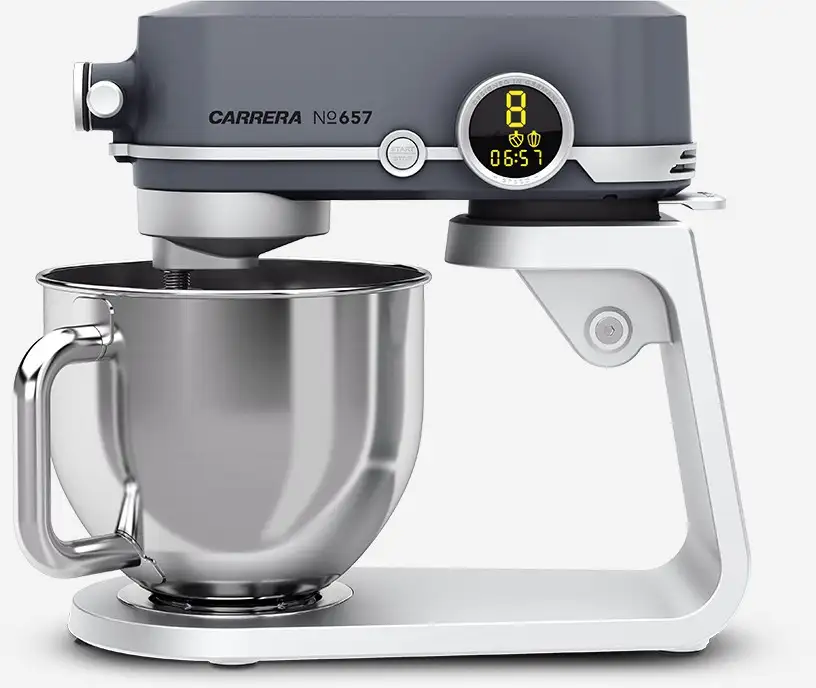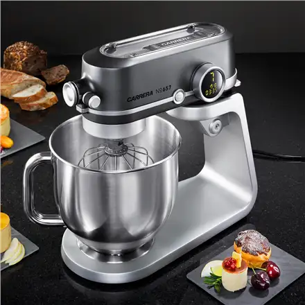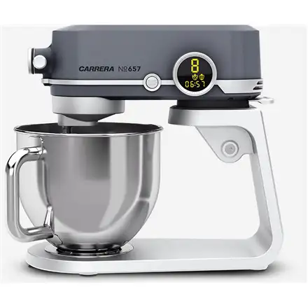 Digital dial with LED display, speed and time indication and mixer-attachment recommendation. Front drive with quick coupling for easy attachment of optional accessories. Mixing arm stops automatically when lifted. Front drive with auto-stop sensor. Overheat protection.