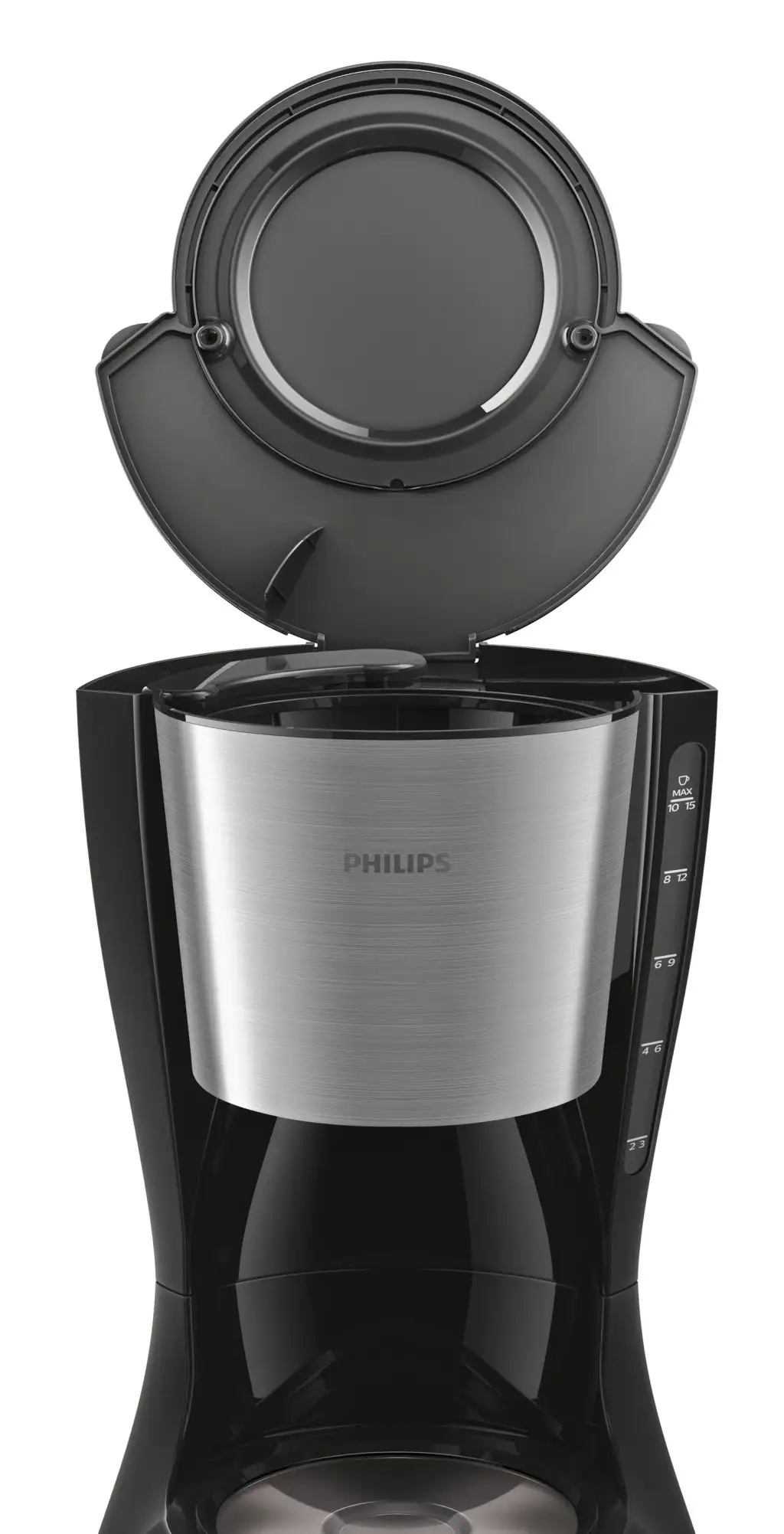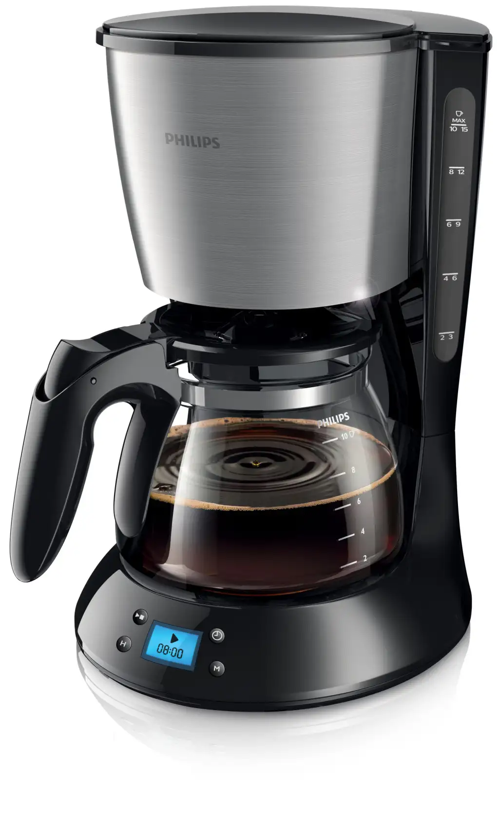Philips Daily Collection HD7459/20 kohvimasin. Toote tüüp: Kohvimasin, Veemahuti suurus: 1,2 l, Kohvi masinasse panemine: Jahvatatud kohv, Mahutavus tassides: 15 tassi, Otsakute arv: 1. Kuvamise tüüp: LCD. Võimsus: 1000 W. Toote värv: Must, Metallik