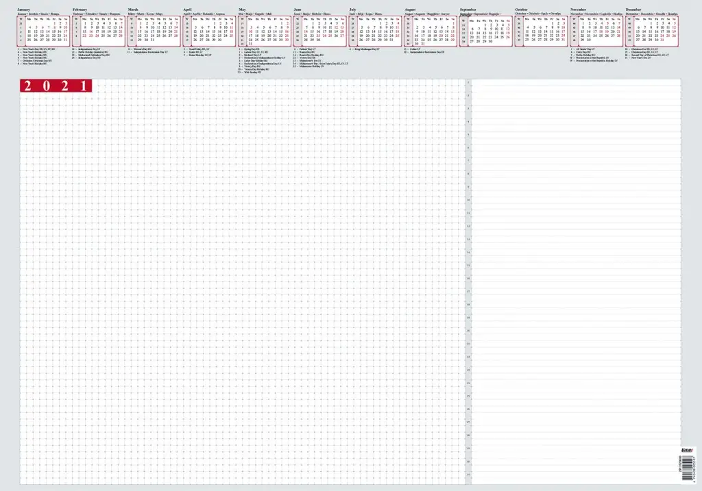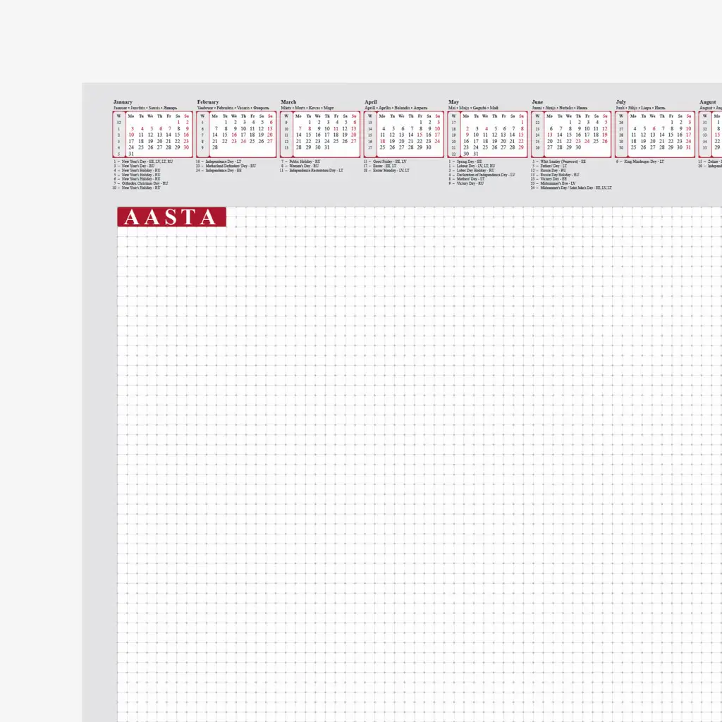Keel: EE,EN,LV,LT,RUSaastakalender, 4 riigi riigipühad.
