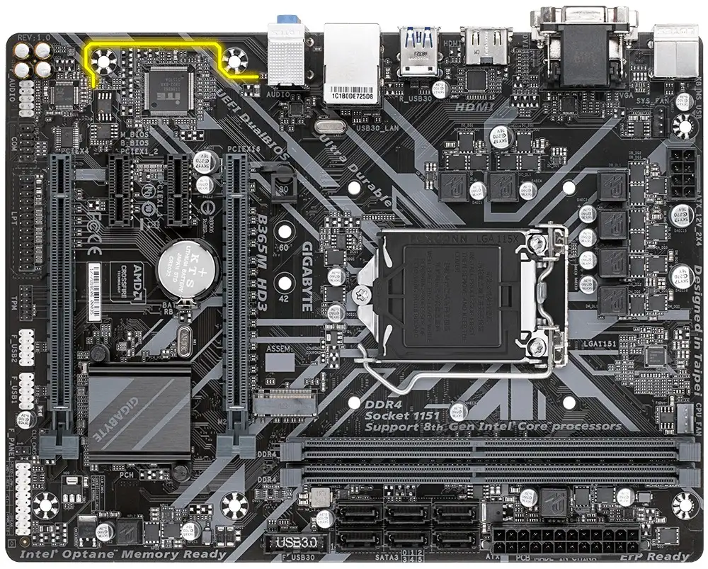 Gigabyte B365M HD3 Processor family Intel, Processor socket LGA1151, DDR4 DIMM, Memory slots 2, Number of SATA connectors 6 x SATA 6Gb/s connectors, Chipset Intel B, Micro ATX