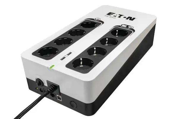 Eaton 3S850D. Puhvertoiteallika topoloogia: Ooteseisund (võrgust väljas), Väljundvõimsuse potentsiaal: 0,85 kVA, Väljundvõimsus: 510 W. AC-väljundite arv: 8 vahelduvvoolu kontakt. Akutehnoloogia: Suletud pliiaku (VRLA). Toote värv: Must, Valge, Kaabli pikkus: 1,5 m, Ohutus: IEC 62040-1; IEC 62040-2 C2; IEC 62040-3; IEC 62040-4; IEC 61643-11. Laius: 335 mm, Sügavus: 170 mm, Kõrgus: 86 mm