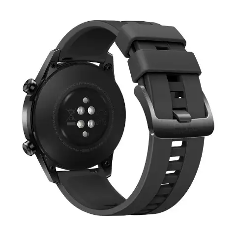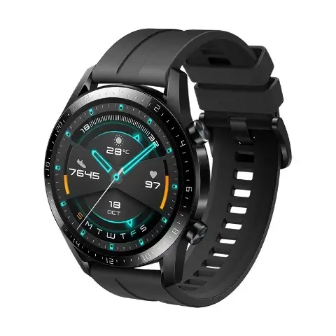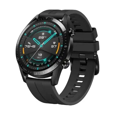 Huawei Watch GT 2. Ekraani diagonaal: 3,53 cm (1.39"), Kuvamise tüüp: AMOLED, Ekraani resolutsioon: 454 x 454 pikslit, Puutetundlik ekraan. GPS (satelliit). Aku mahutavus: 455 mAh. Kaal: 41 g. Veekindel kuni: 50 m, Rihma materjal: Fluoroelastomeer, Rihma värv: Must