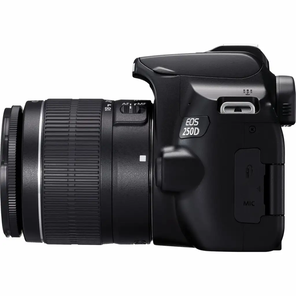 Canon EOS 250D + EF-S 18-55mm f/3.5-5.6 III. Kaamera tüüp: SLR-kaamera komplekt, Megapiksel: 24,1 MP, Anduri tüüp: CMOS, Maksimaalne pildiresolutsioon: 6000 x 4000 pikslit. ISO-tundlikkus (max): 51200. Fookuskauguse ulatus: 18 - 55 mm. WiFi. HD tüüp: 4K Ultra HD, Maksimaalne video resolutsioon: 3840 x 2160 pikslit. Ekraani diagonaal: 7,62 cm (3"), Puutetundlik ekraan. Pildiotsija tüüp: Optiline. PictBridge. Kaal: 449 g. Toote värv: Must