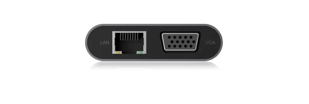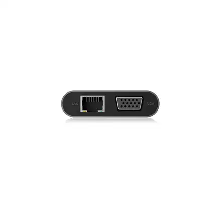 Premium aluminium enclosure; Data transfer, video/audio and Power Delivery via one Type-C™ cable; Two video interfaces (HDMI® and VGA); High Speed HDMI® resolution up to 3840X2160@30 Hz; VGA resolution up to 1920x1080P@60 Hz; Three USB 3.0 Type-A interfaces, data transfer rate with up to 5 Gbit/s; One Type-C™ charging port for Power Delivery 3.0 with up to 100 W, no data transfer; SD 2.0 and microSD 2.0 single LUN card reader for most common card specifications; 3.5 mm stereo combo jack (microphone / audio out); Gigabit LAN RJ45 interface with up to 10/100/1000 Mbit/s