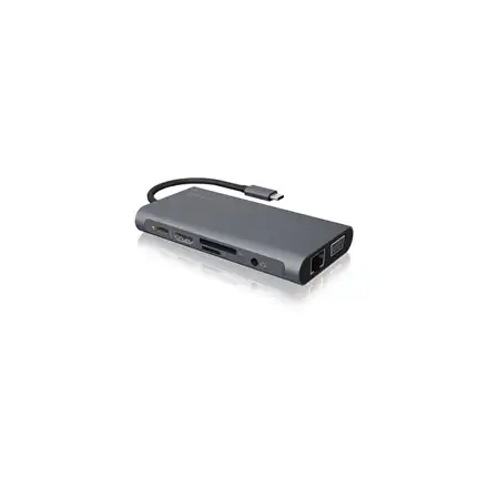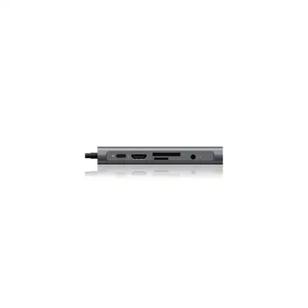 Üldised näitajad | Premium aluminium enclosure; Data transfer, video/audio and Power Delivery via one Type-C™ cable; Two video interfaces (HDMI® and VGA); High Speed HDMI® resolution up to 3840X2160@30 Hz; VGA resolution up to 1920x1080P@60 Hz; Three USB 3.0 Type-A interfaces, data transfer rate with up to 5 Gbit/s; One Type-C™ charging port for Power Delivery 3.0 with up to 100 W, no data transfer; SD 2.0 and microSD 2.0 single LUN card reader for most common card specifications; 3.5 mm stereo combo jack (microphone / audio out); Gigabit LAN RJ45 interface with up to 10/100/1000 Mbit/s |