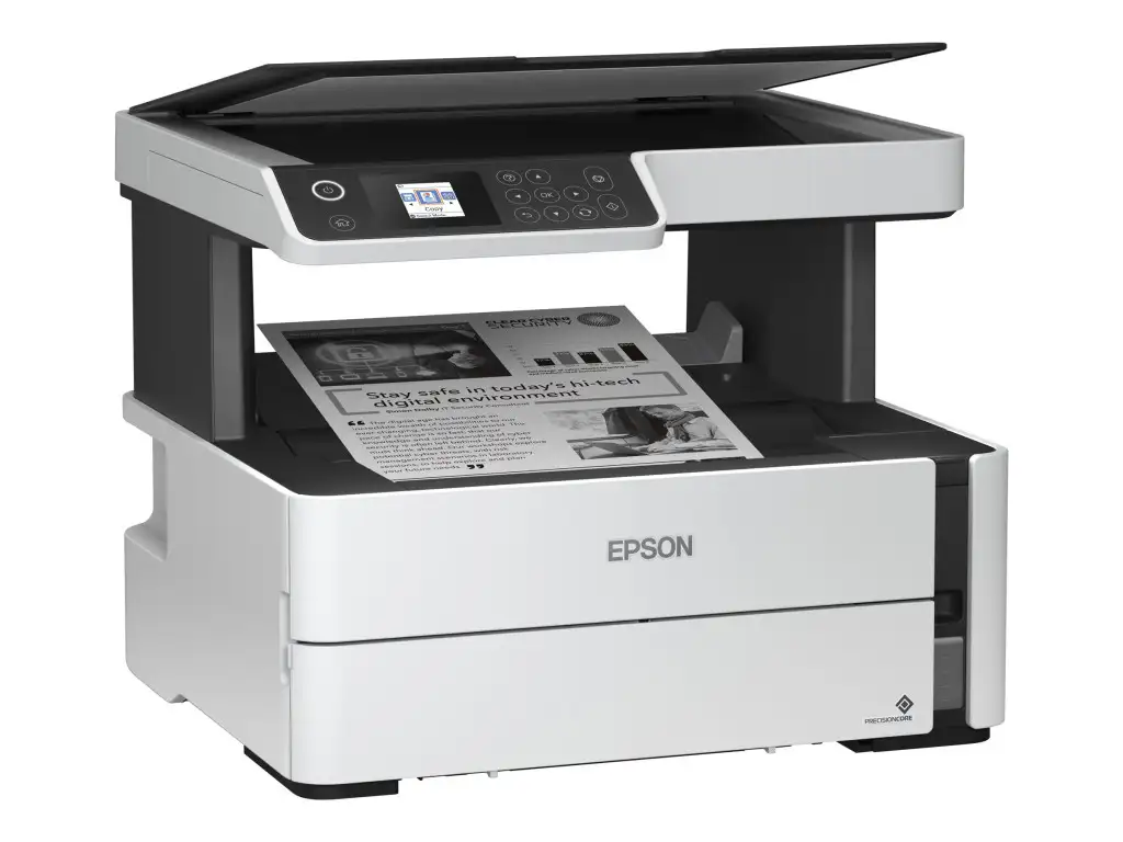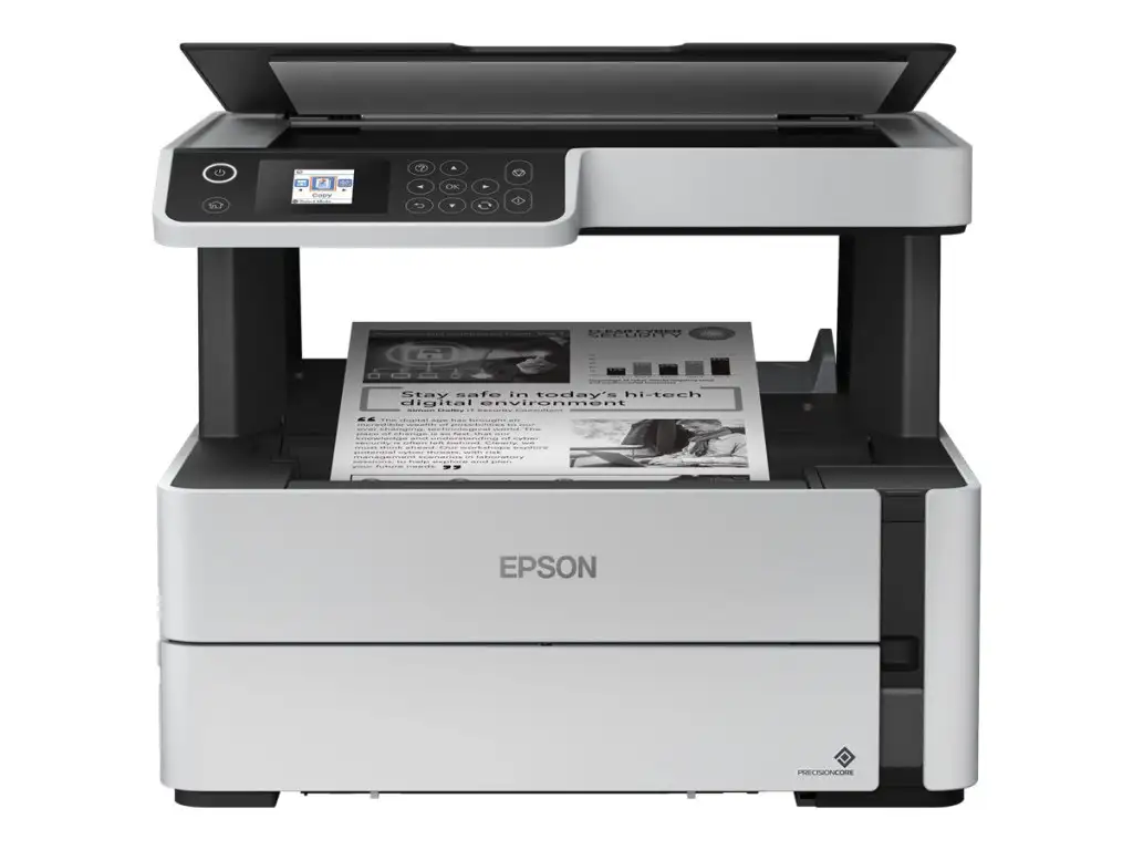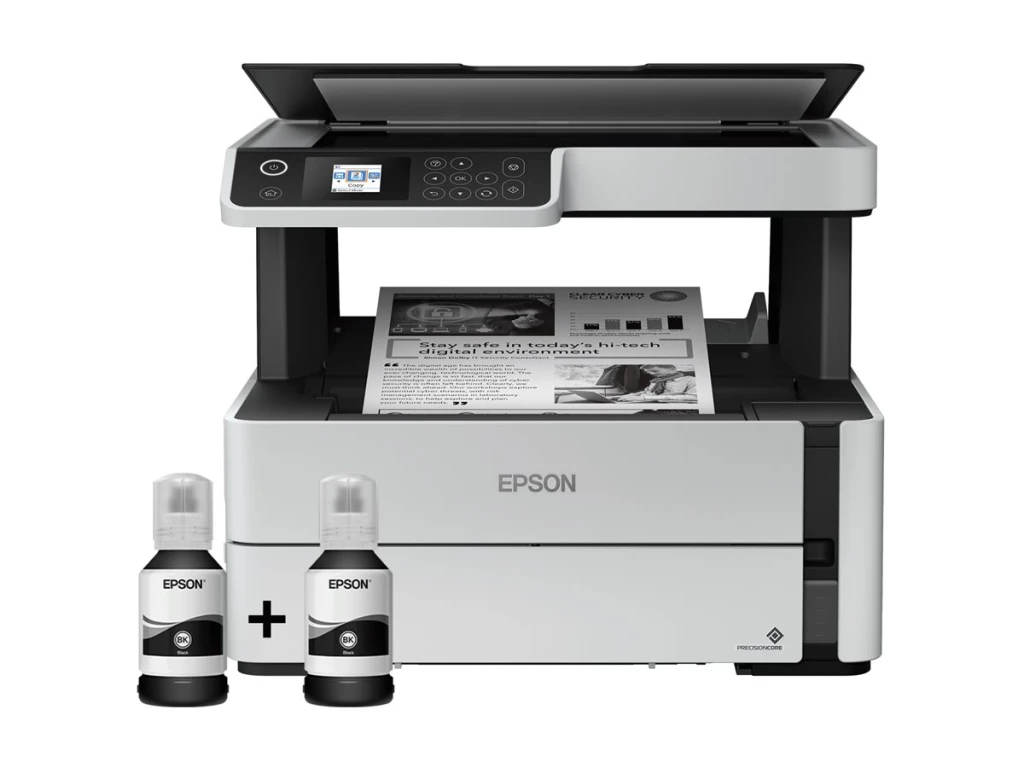 Epson EcoTank M2170. Printimistehnoloogia: Tint, Printimine: Mono printimine. Maksimaalne resolutsioon: 1200 x 2400 DPI. Kopeerimine: Mono kopeerimine. Maksimaalne kopeerimisresolutsioon: 600 x 600 DPI. Skaneerimine: Värviskaneerimine. Optilise skaneerimise resolutsioon: 1200 x 2400 DPI. Dupleksfunktsioonid: Print. Maksimaalne ISO A-seeria paberi suurus: A4. Standardne sisestusvõimsus: 250 lehte, Standardne väljundvõimsus: 100 lehte. WiFi. Otseprintimine. Toote värv: Must, Valge