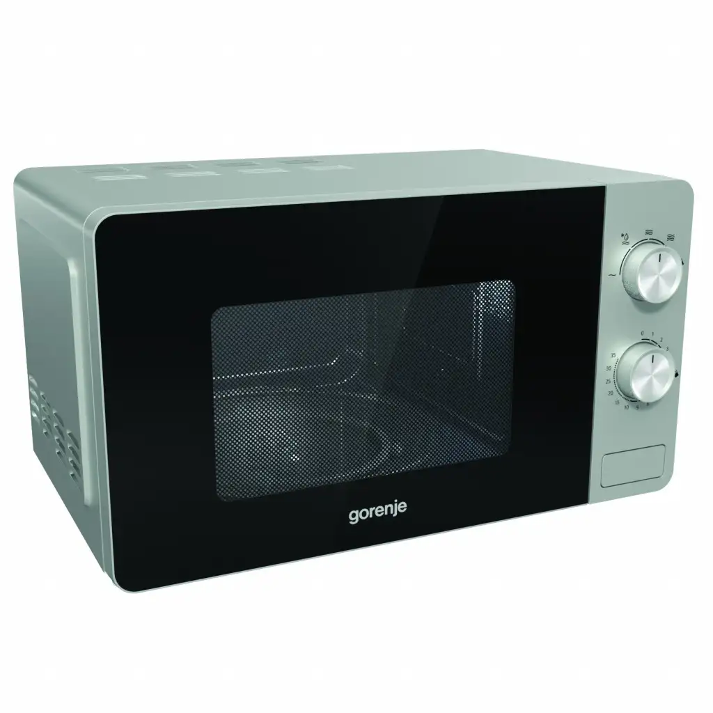 Gorenje MO17E1S. Seadme paigaldus: Eraldiseisev, Toote tüüp: Eraldiseisev mikrolaineahi, Sisemahutavus: 17 l, Mikrolainevõimsus: 700 W, Kontrolli tüüp: Pöörlev, Toote värv: Must, Roostevaba teras