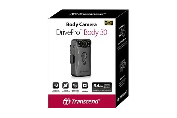 Transcend’s DrivePro Body 30 is a feature-packed body camera designed specifically for public safety professionals. With a twelve-hour battery life, IP67 rated environmental sealing, military-grade shock resistance, and a pre-event buffer, the DrivePro Body 30 is always ready for action. The Sony image sensor, high-quality lens, automatic infrared illumination, and six-axis image stabilization guarantee clear, high-definition evidence collection. Paired with Transcend’s DrivePro Body App for iOS and Android smartphones, users can easily control the DrivePro Body 30 and manage videos and photos on the device.