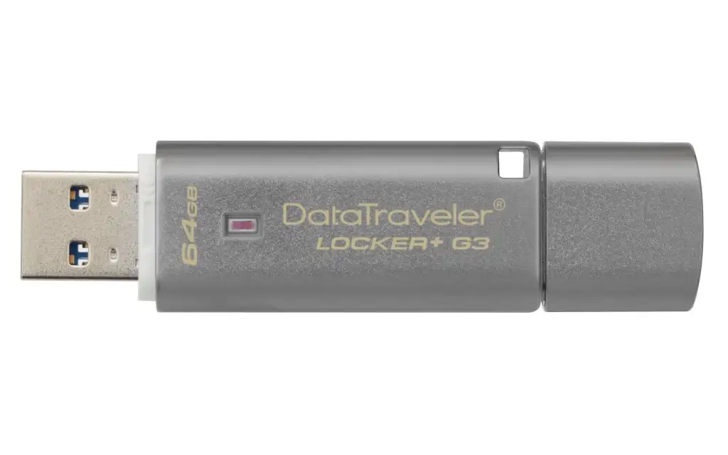 Kingston Technology Locker+ G3 64GB, DataTraveler. USB versioon: USB 3.0 (3.1 Gen 1), USB-konnektor: Type-A, Toetatud Windowsi operatsioonisüsteemid: Windows 7 Home Basic, Windows 7 Home Basic x64, Windows 7 Home Premium, Windows 7 Home Premium x64, . Kujutegur: Kork, Toote värv: Hõbe, Materjal: Metall. Pakendi tüüp: Vill. Mälu paigutus: 1 x 65536 MB, Sisemälu tüüp: Flash, Mooduli konfiguratsioon: (N/A) (N/A)